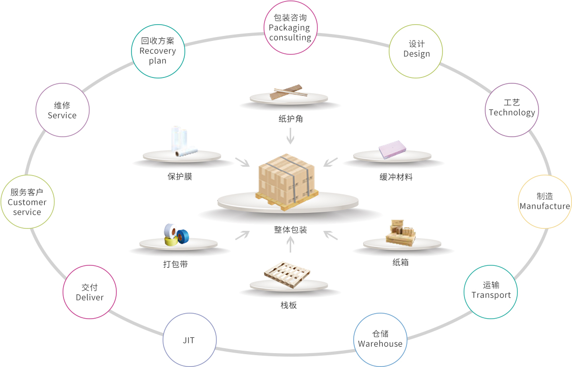 CPS采用系統(tǒng)工程的科學(xué)方法,向客戶提供從包裝咨詢、設(shè)計(jì)、工藝、制造、運(yùn)輸、倉(cāng)儲(chǔ)、JIT、交付、直到產(chǎn)品安全到達(dá)目的地的一整套系統(tǒng)服務(wù),同時(shí)提供循環(huán)經(jīng)濟(jì)的回收方案設(shè)計(jì) 。